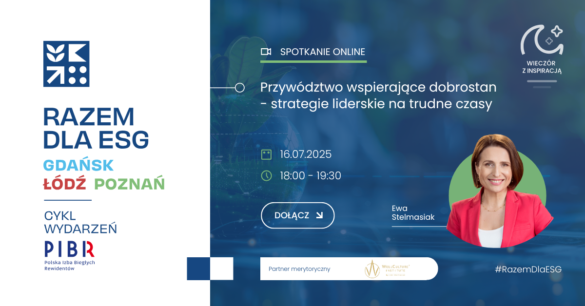 W styczniu 2025 r. ruszyła inicjatywa #RazemDlaESG zapoczątkowana przez 3 Regionalne Oddziały Polskiej Izby Biegłych Rewidentów: Łódź, Poznań i Gdańsk. Inspiracją do rozpoczęcia wspólnych działań jest Ewa Sowińska, liderka ESG, biegła rewidentka.