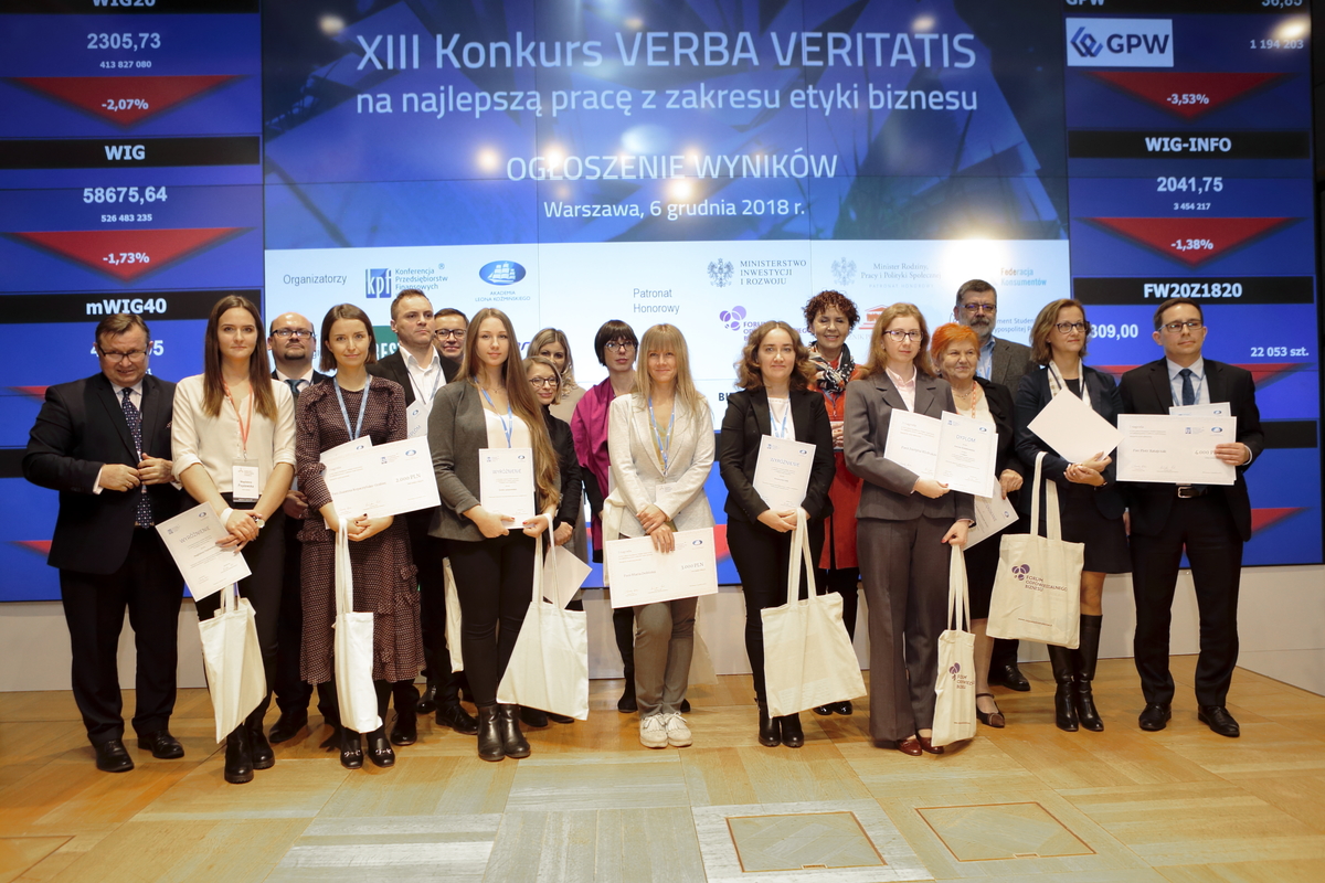 Zakończyła się XIII edycja konkursu Verba Veritatis, w którym nagradzane są najlepsze prace akademickie poświęcone zagadnieniom etyki biznesu.