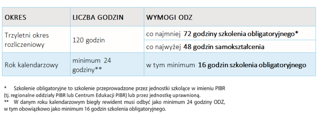 Przypominamy, że w każdym roku biegły rewident bezwzględnie powinien odbyć 24 godziny szkolenia, w tym minimum 16 godzin szkolenia z zakresu szkoleń obligatoryjnych. Pozostałe godziny mogą być uzupełnione w ramach tzw. samokształcenia.