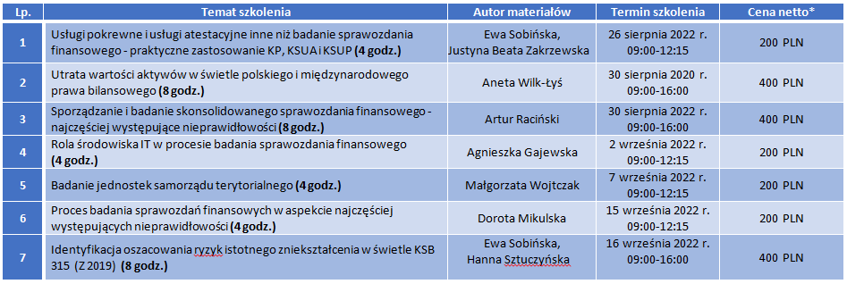 Dla biegłych rewidentów szkolenie jest zwolnione z vat.