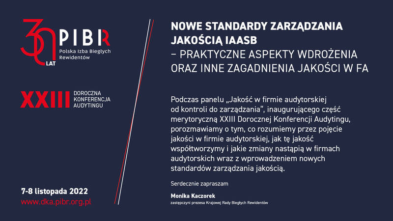 Zarządzanie jakością w firmie audytorskiej będzie tematem panelu wprowadzającego w trakcie XXIII Dorocznej Konferencji Audytingu.
