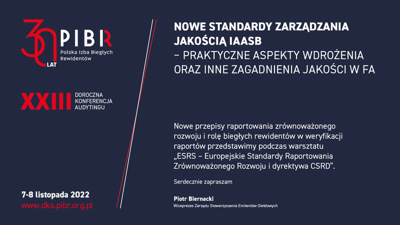 Warsztat „ESRS – Europejskie Standardy Raportowania Zrównoważonego Rozwoju i dyrektywa CSRD” odbędzie się drugiego dnia XXIII DKA w godzinach 13:50-14:50.