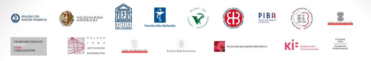 Przypominamy, że w skład Ogólnopolskiego Porozumienia Samorządów Zawodów Zaufania Publicznego wchodzą: Krajowa Izba Radców Prawnych, Naczelna Rada Adwokacka, Naczelna Izba Lekarska, Naczelna Izba Pielęgniarek i Położnych, Polska Izba Inżynierów Budownictwa, Krajowa Izba Lekarsko-Weterynaryjna, Krajowa Rada Komornicza, Polska Izba Rzeczników Patentowych, Krajowa Izba Doradców Podatkowych, Krajowa Izba Diagnostów Laboratoryjnych, Krajowa Izba Architektów RP, Naczelna Izba Aptekarska, Stowarzyszenie Polska Izba Urbanistów, Krajowa Izba Fizjoterapeutów, Krajowa Rada Kuratorów, Polska Izba Biegłych Rewidentów.