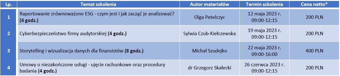 Dla uczestników nie będących biegłymi rewidentami do ceny należy doliczyć 23% vat.