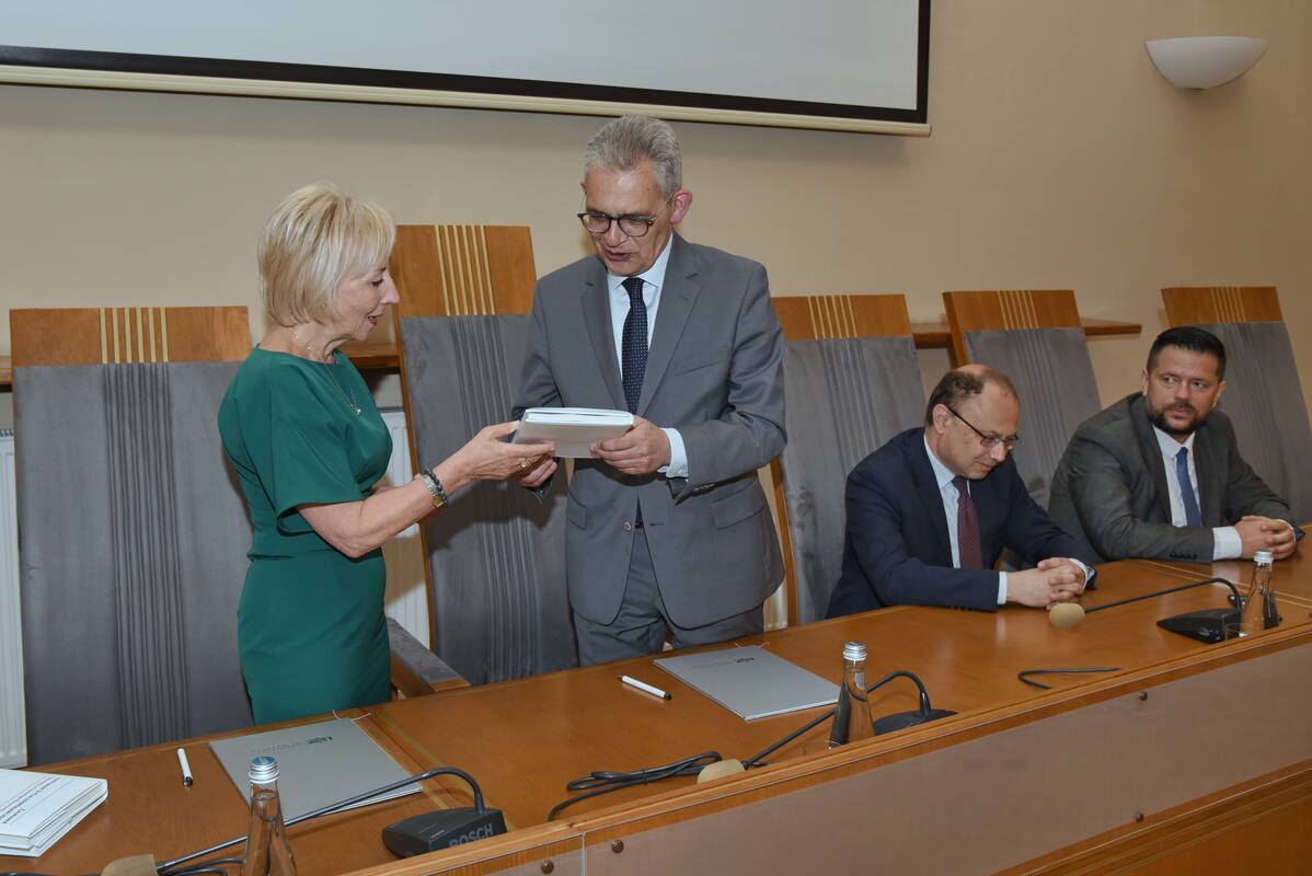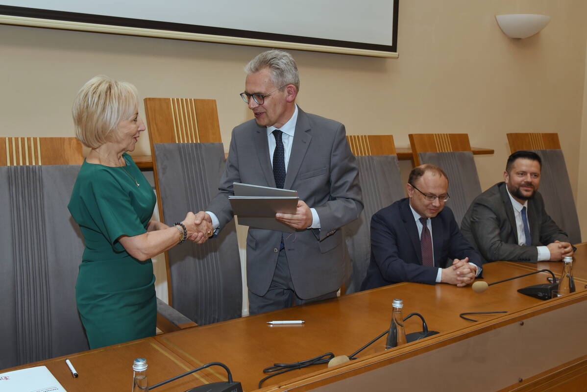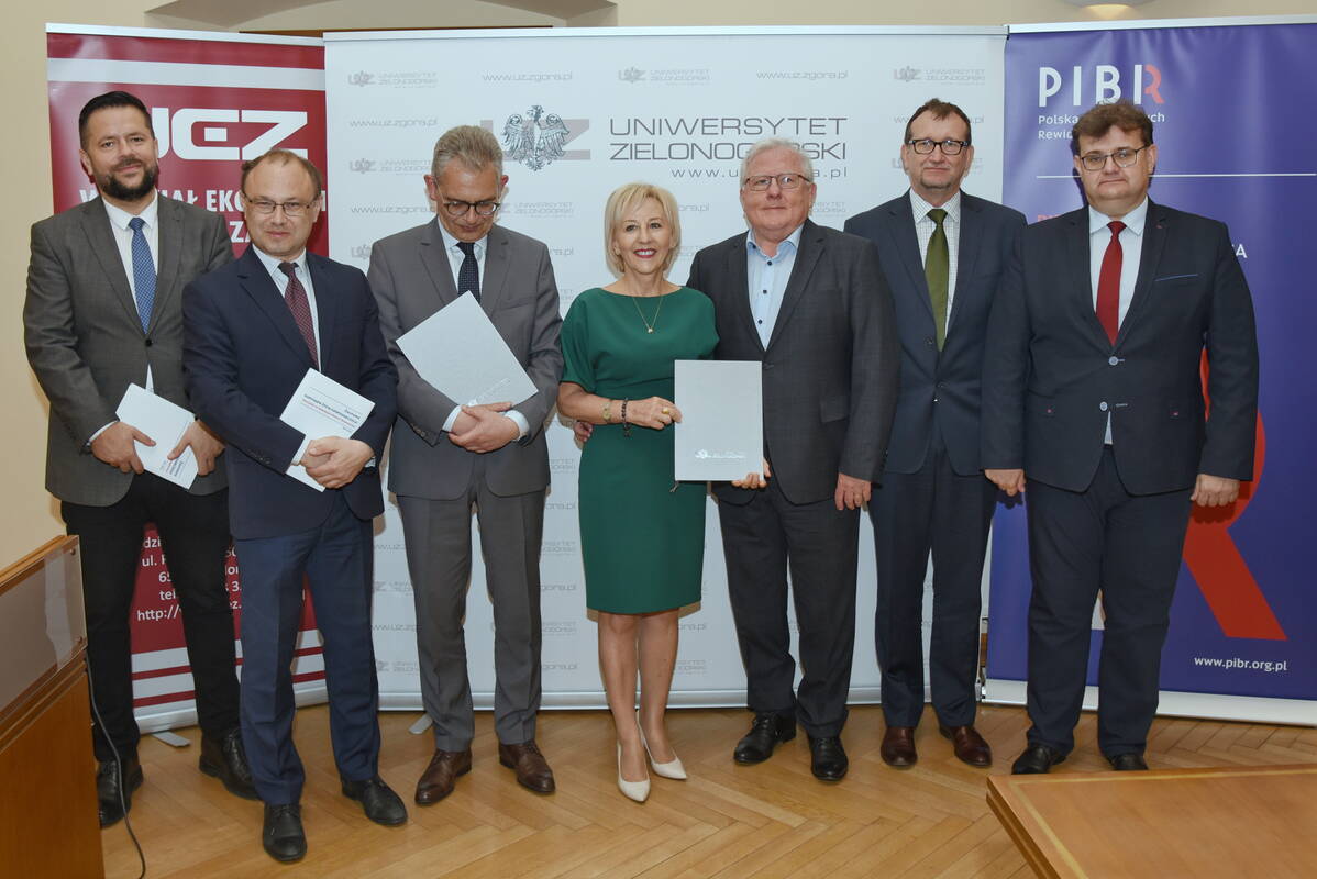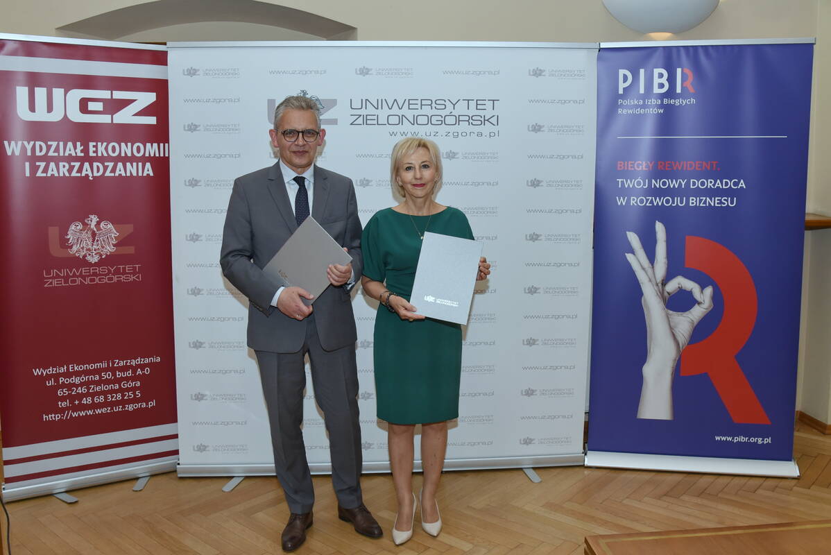 Rektor Uniwersytetu Zielonogórskiego prof. dr hab. Wojciech Strzyżewski i prezes Krajowej Rady Biegłych Rewidentów Barbara Misterska-Dragan podpisali 26 maja 2023 r. porozumienie o współpracy pomiędzy Uniwersytetem a Polską Izbą Biegłych Rewidentów. W uroczystości, która odbyła się na Uniwersytecie Zielonogórskim wzięli udział także: dr hab. Piotr Kułyk, prof. UZ – dziekan Wydziału Ekonomii i Zarządzania, gdzie porozumienie będzie realizowane oraz dr inż. Leszek Kaźmierczak-Piwko – prodziekan Wydziału Ekonomii i Zarządzania. Ze strony PIBR obecni byli również przedstawiciele zielonogórskiego oddziału: Jacek Wegner – były prezes Regionalnej Rady, który zainicjował rozmowy o współpracy oraz Jacek Korzyb – obecny prezes i Piotr Ostręga – skarbnik RO PIBR w Zielonej Górze.
