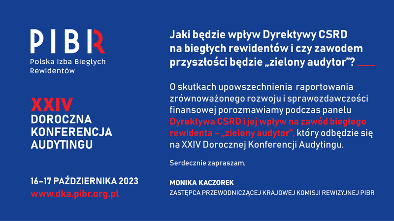 Wpływ Dyrektywy CSRD na biegłych rewidentów będzie tematem dyskusji prowadzonej przez ekspertów podczas panelu, który odbędzie się podczas XXIV Dorocznej Konferencji Audytingu.