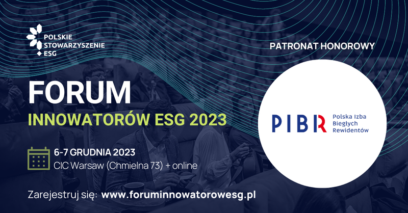 Polskie Stowarzyszenie ESG organizuje po raz drugi Forum Innowatorów ESG. W tym roku konferencja odbędzie się w dniach 6 - 7 grudnia stacjonarnie w Warszawie. Będzie ją można oglądać także online. Polska Izba Biegłych Rewidentów jest patronem honorowym wydarzenia.