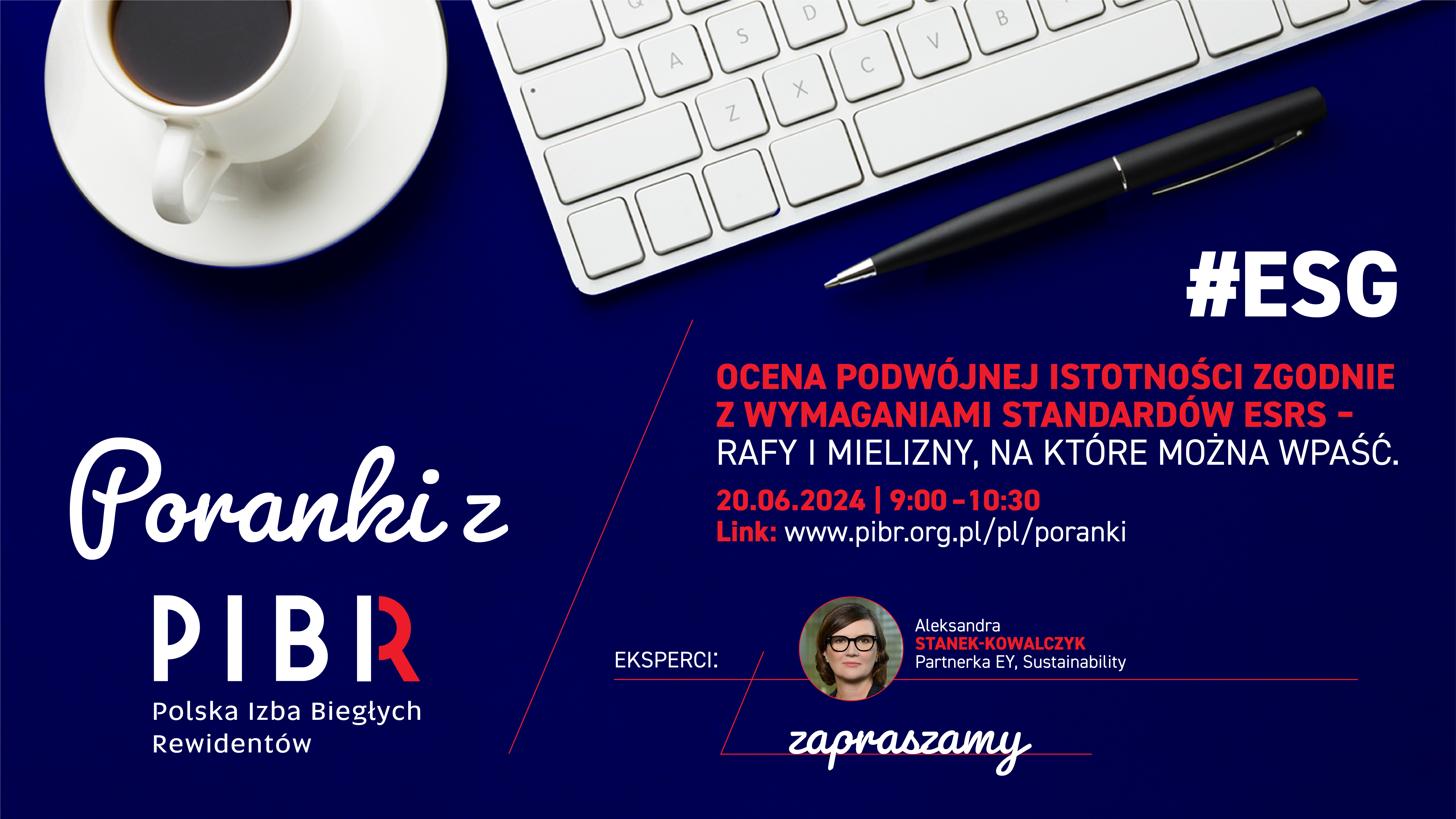 „Ocena podwójnej istotności zgodnie z wymaganiami standardów ESRS – rafy i mielizny, na które można wpaść” będzie tematem poranka w czwartek 20 czerwca 2024 r. Naszym gościem będzie Aleksandra Stanek-Kowalczyk, Partnerka EY, Sustainability. Zachęcamy do zarezerwowania sobie czasu na ten waży temat z zakresu ESG.