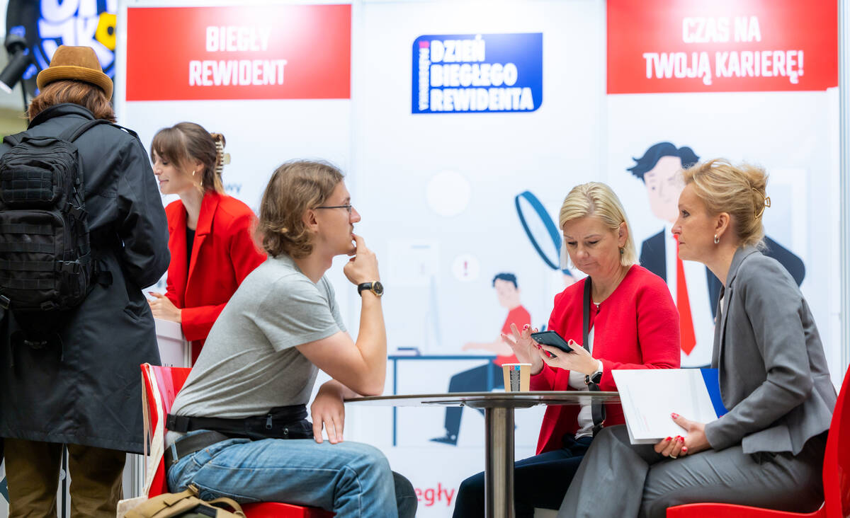 Elementem obchodów „Dnia Biegłego Rewidenta” na SGH było także stoisko informacyjne, przy którym można było porozmawiać z biegłymi rewidentami o tym, jak wejść do zawodu i jakie wiążą się z tym perspektywy.