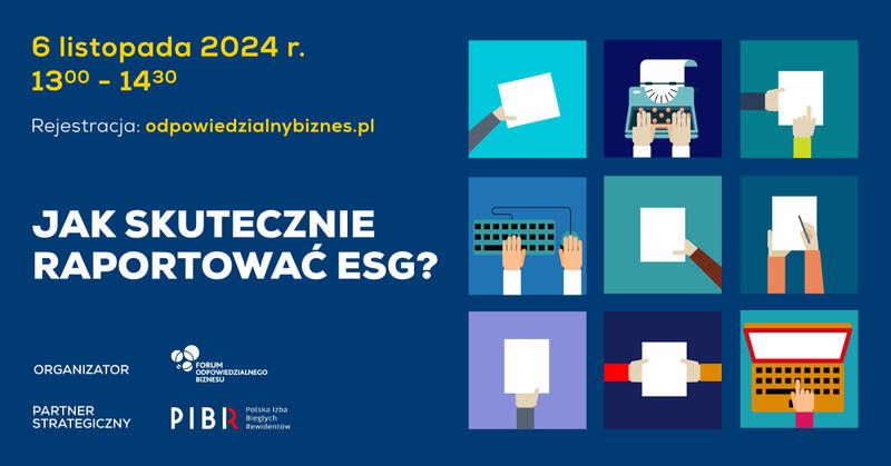 Forum Odpowiedzialnego Biznesu organizuje 6 listopada br. webinar podsumowujący 18. edycję konkursu „Raporty Zrównoważonego Rozwoju”. Podczas spotkania zostanie podjęty temat szans i wyzwań w obszarze ESG, przed którymi stoją obecnie firmy. Zaprezentowane zostaną także kryteria przyszłorocznej edycji konkursu. Zachęcamy do udziału. Polska Izba Biegłych Rewidentów jest jej partnerem strategicznym tegorocznej edycji konkursu.