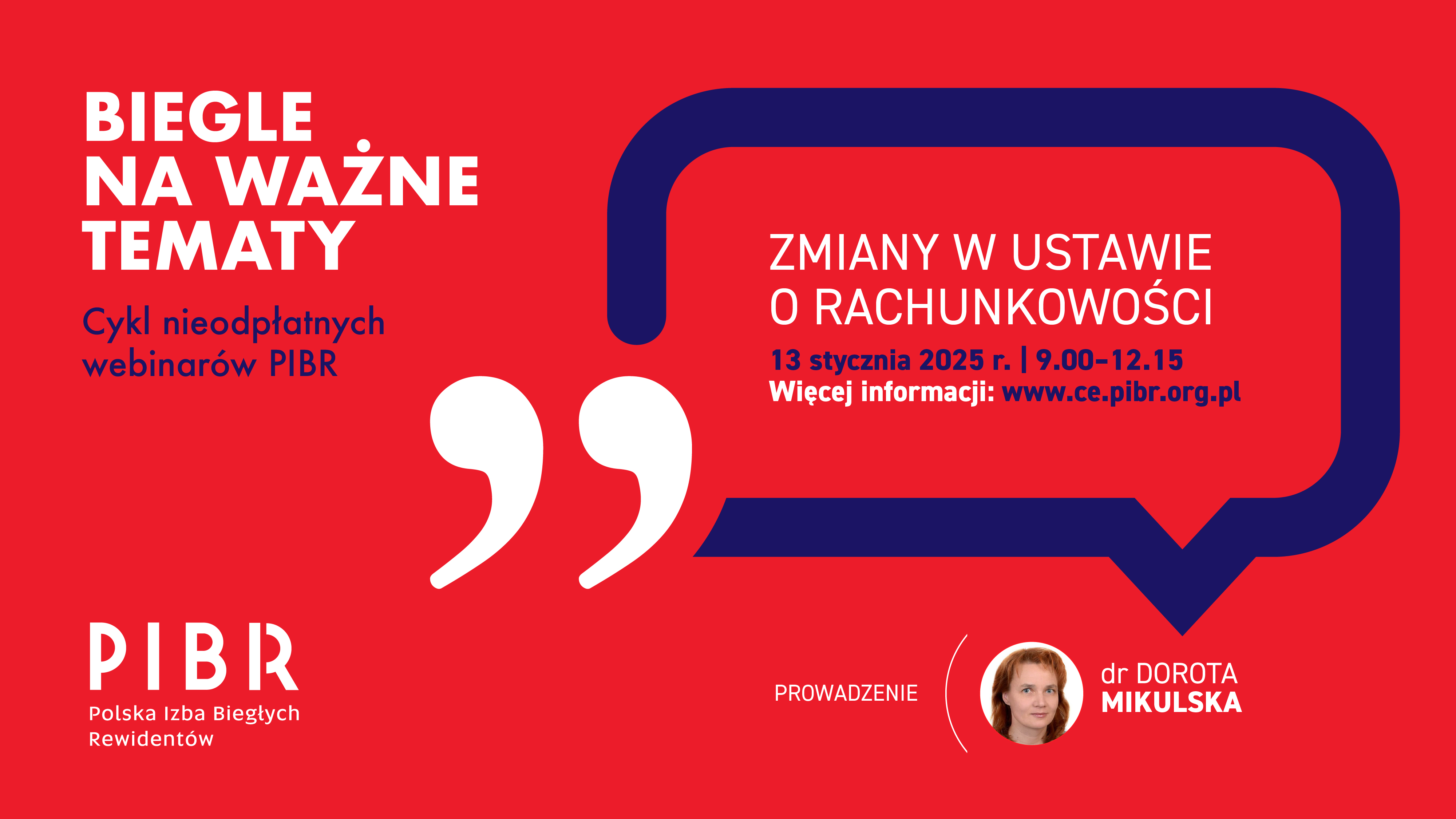 W ramach cyklu „Biegle na ważne tematy” odbędzie się 13 stycznia 2025 r. webinar pt. „Zmiany w ustawie o rachunkowości”. Poświęcony będzie omówieniu zaimplementowanych unijnych przepisów w zakresie zrównoważonego rozwoju (CSRD) oraz dostosowania kryteriów wielkości przedsiębiorstw. Udział jest nieodpłatny, ale konieczna jest rejestracja przez stronę Centrum Edukacji PIBR, organizatora webinaru.