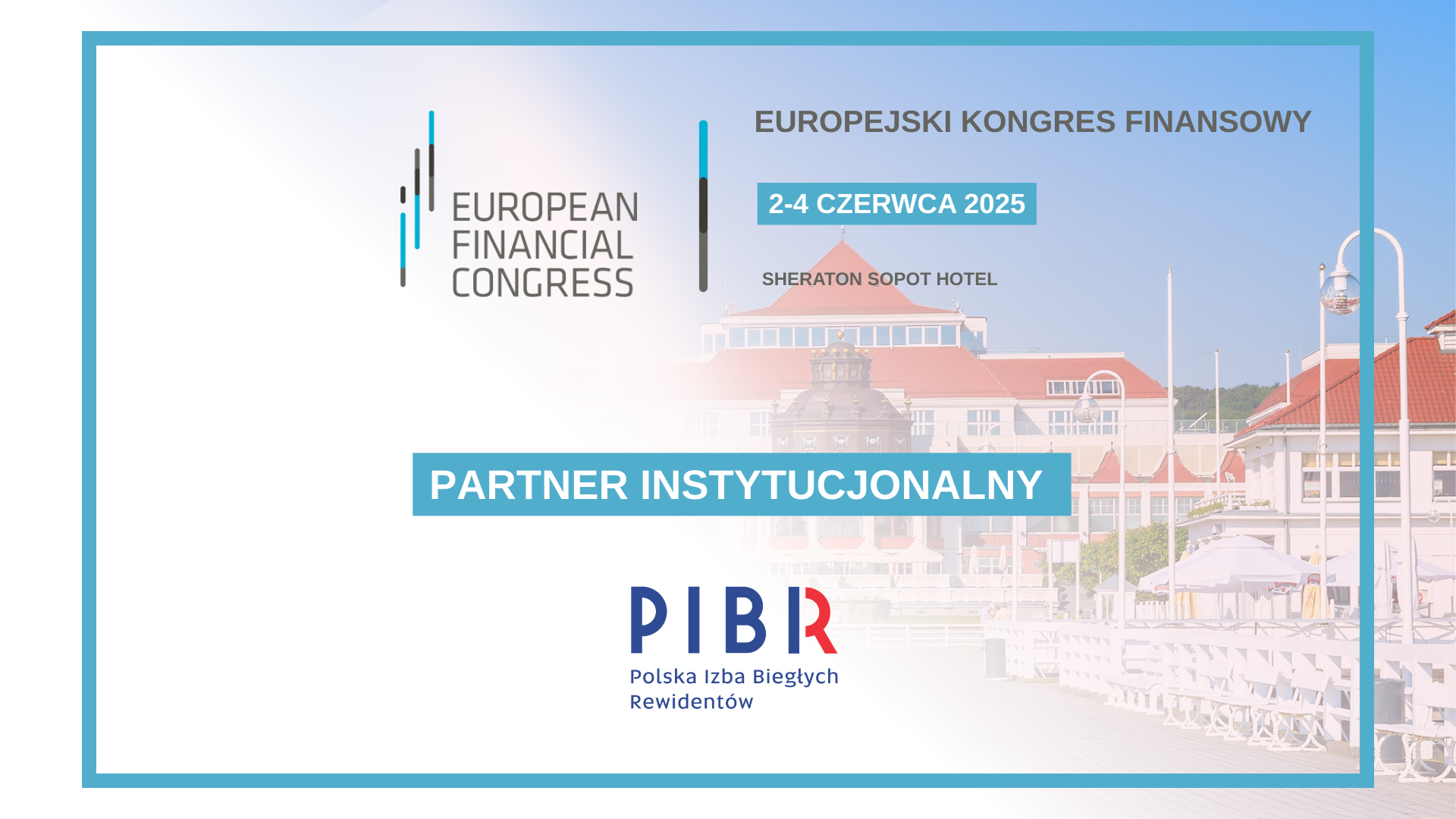 Polska Izba Biegłych Rewidentów została partnerem instytucjonalnym XV edycji Europejskiego Kongresu Finansowego w Sopocie, który odbędzie się w dniach 2-4 czerwca 2025 r. Zachęcamy do zapoznania się z programem i do udziału w jednym z najważniejszych spotkań świata finansów w Europie Środkowo-Wschodniej. Dla biegłych rewidentów przewidziano 30% zniżki przy rejestracji.