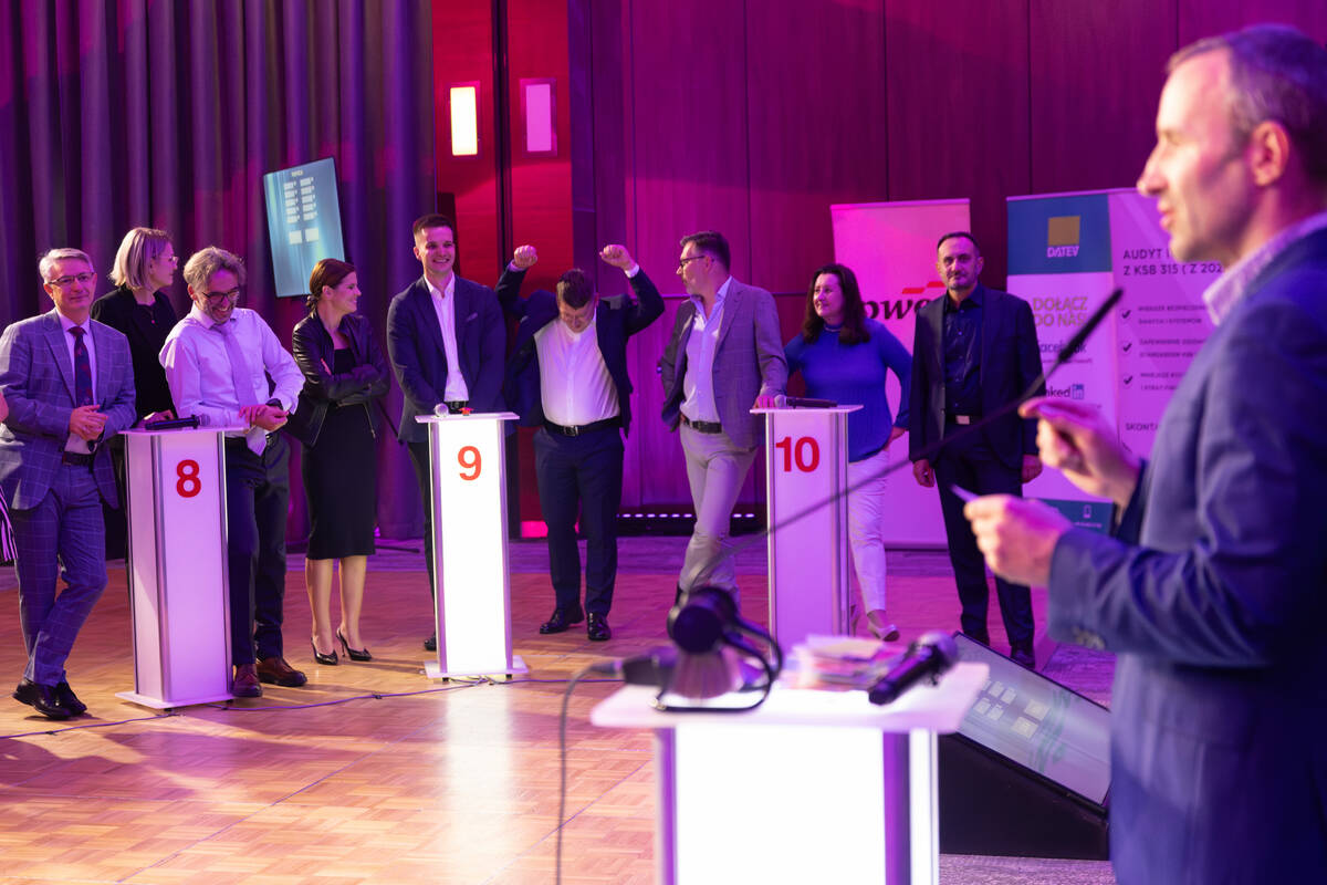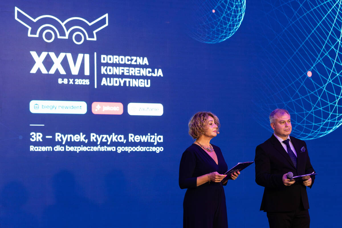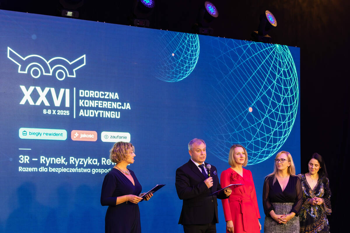 W dalszej części wieczoru pojawiła się też niespodzianka dla debiutantów konferencji – osób uczestniczących w DKA po raz pierwszy. Wśród nich wylosowano sześć osób (trzy obecne stacjonarnie i trzy uczestniczące online), które otrzymały vouchery na warsztaty w Centrum Edukacji PIBR – symboliczny gest powitania w środowisku biegłych rewidentów.