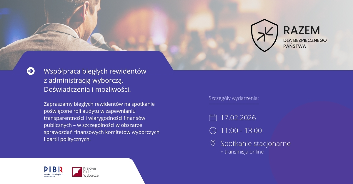„Razem dla bezpiecznego państwa. Współpraca biegłych rewidentów z administracją wyborczą – doświadczenia i możliwości” to temat spotkania, które odbędzie się 17 lutego w formule hybrydowej – online oraz w Biurze PIBR.