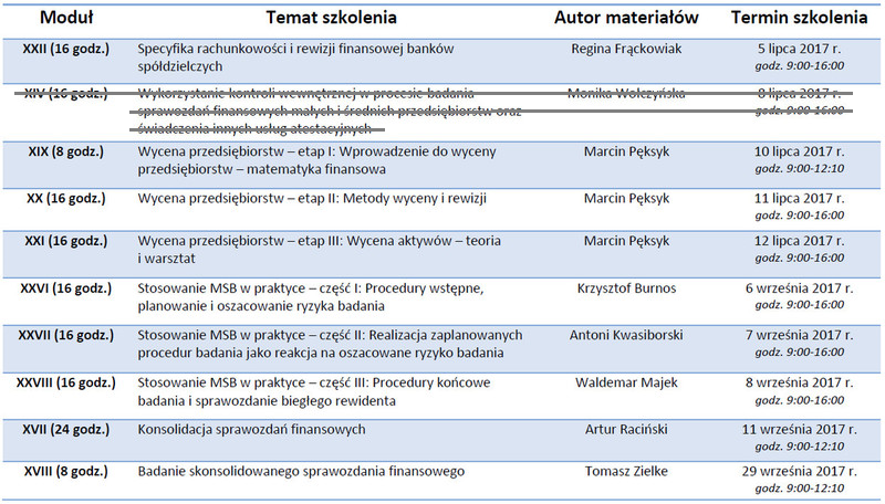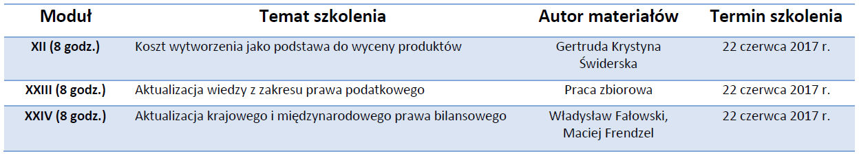 Dodatkowo informujemy o terminach szkoleń dla wykładowców, które organizowane będą przez Stowarzyszenie Księgowych w Polsce i odbędą się w siedzibie Zarządu Głównego w Warszawie przy ul. Górnośląskiej 5: