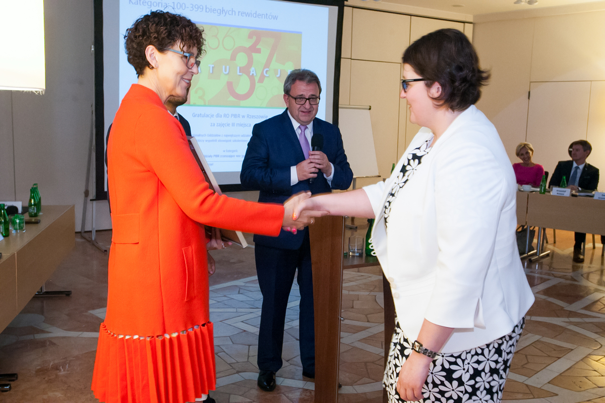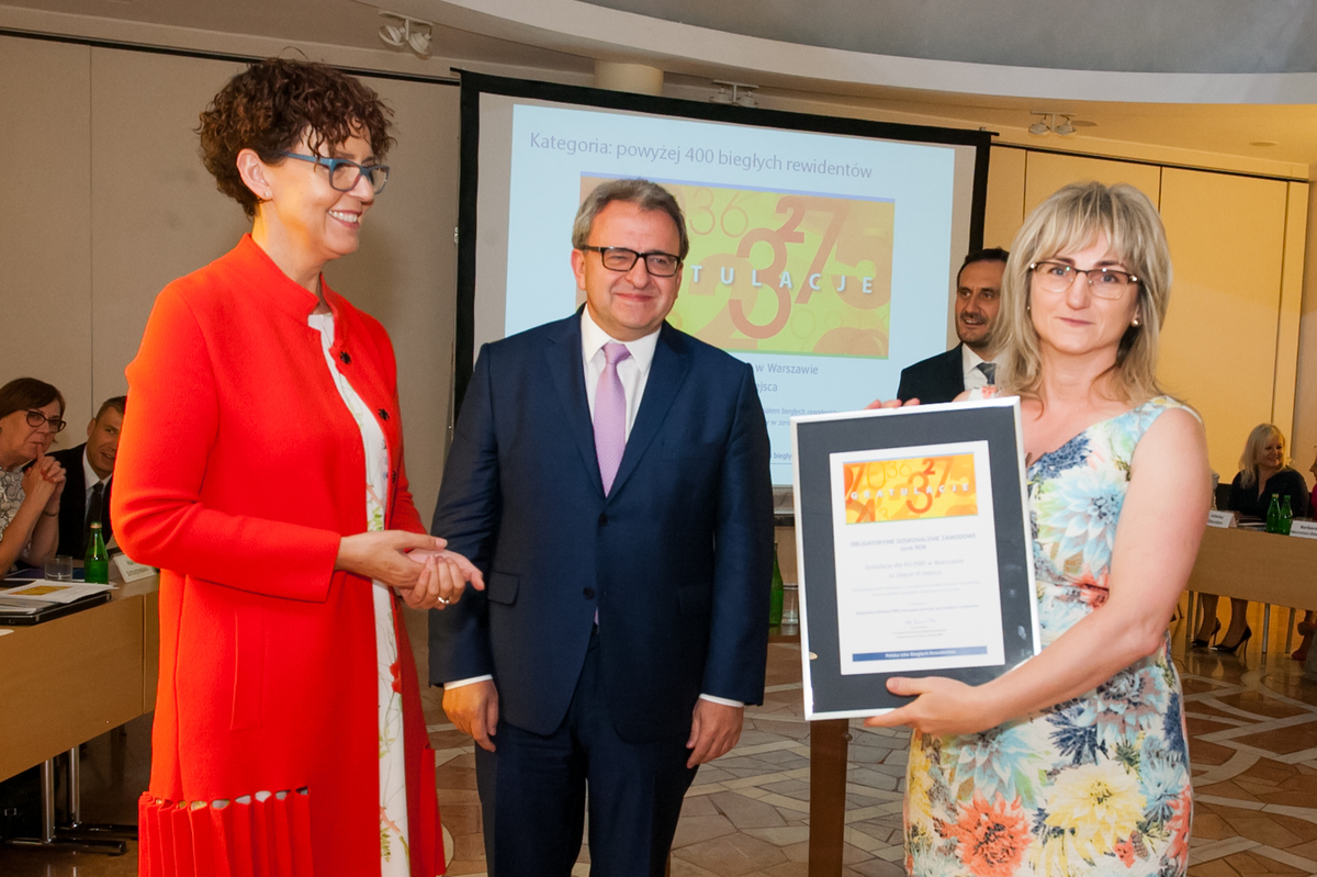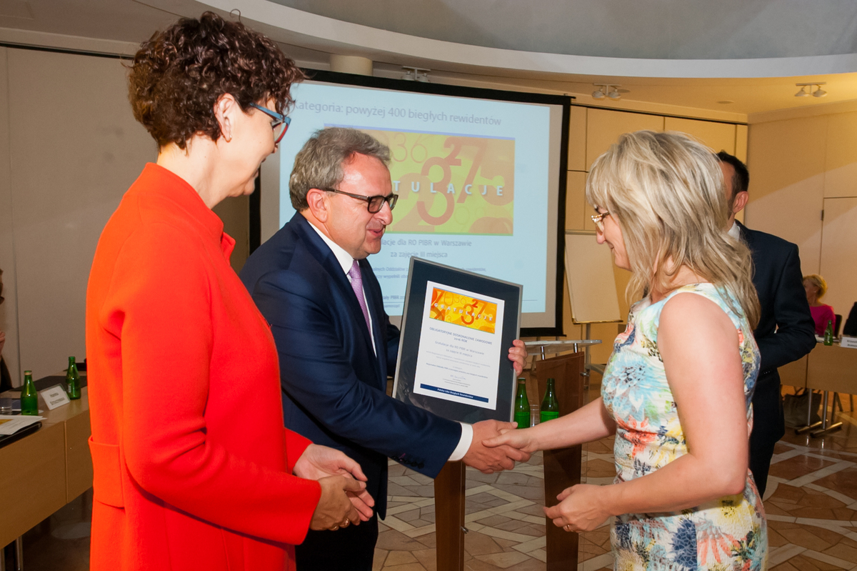Po krótkiej sesji pytań Ewa Sowińska, Adam Kęsik i Andrzej Karpiak – członkowie KRBR, a zarazem członkowie Komisji ds. szkoleń wręczyli "Gratulacje" przedstawicielom tych regionalnych oddziałów, w których największy odsetek biegłych rewidentów zrealizował obowiązek szkoleniowy w ramach ODZ. W ogólnym rankingu oraz w kategorii oddziałów pomiędzy 100 a 399 członków zwyciężył podobnie jak w roku poprzednim RO w Bielsku-Białej, który w związku z tym otrzymał nagrodę: voucher na 3 500 zł na dofinansowanie organizacji obchodów 25-lecia.