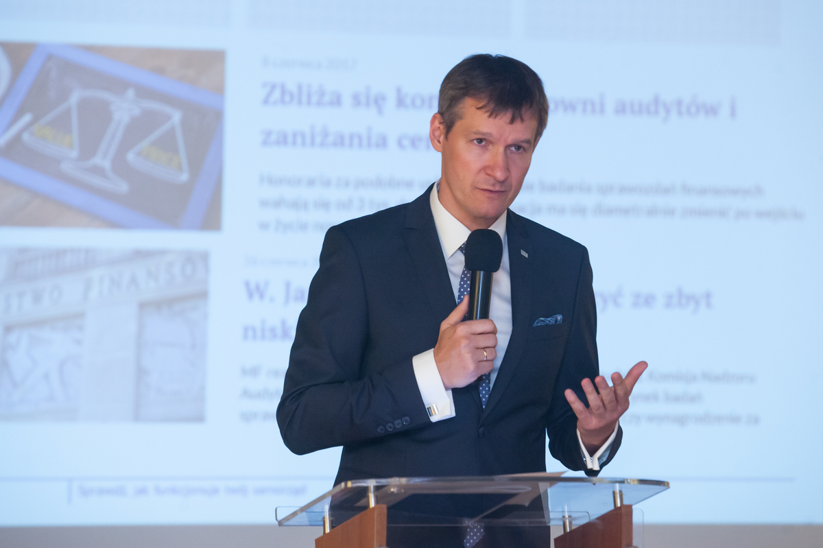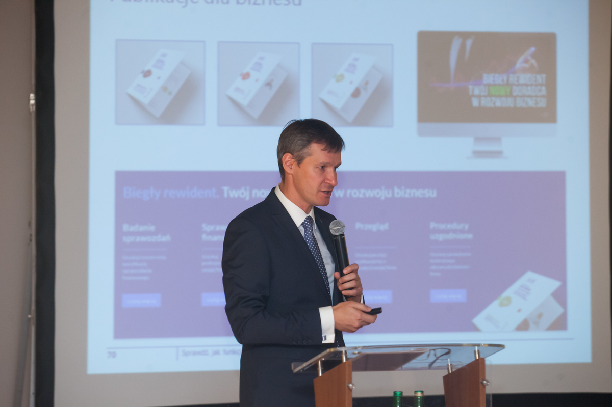 Po przerwie Paweł Tyszer, dyrektor Centrum Edukacji KIBR, pokazał najważniejsze funkcjonalności nowego serwisu internetowego PIBR oraz inne elementy realizacji przejrzystej polityki komunikacyjnej KRBR, realizowanej od początku kadencji. Zapoznał także uczestników z przygotowanymi z myślą o biznesie materiałami promującymi biegłych rewidentów jako wszechstronnych doradców firm.