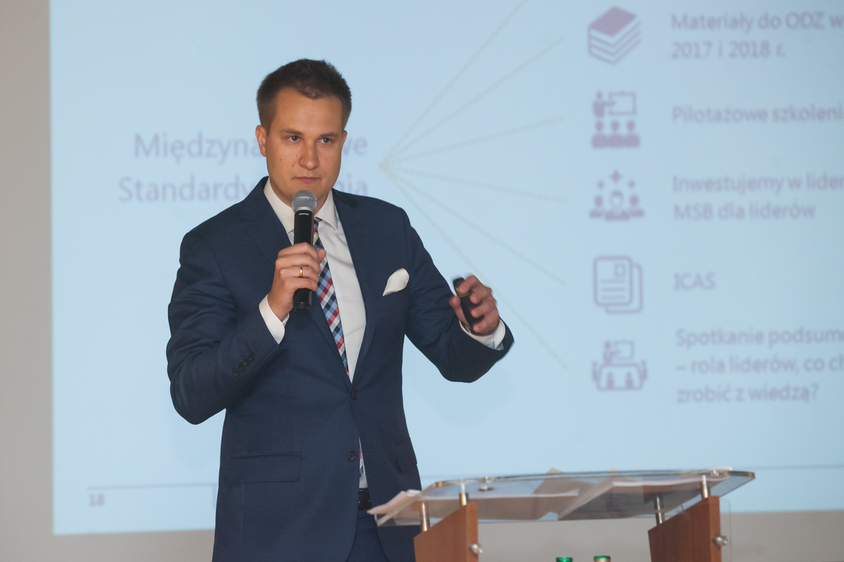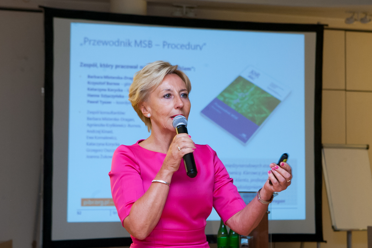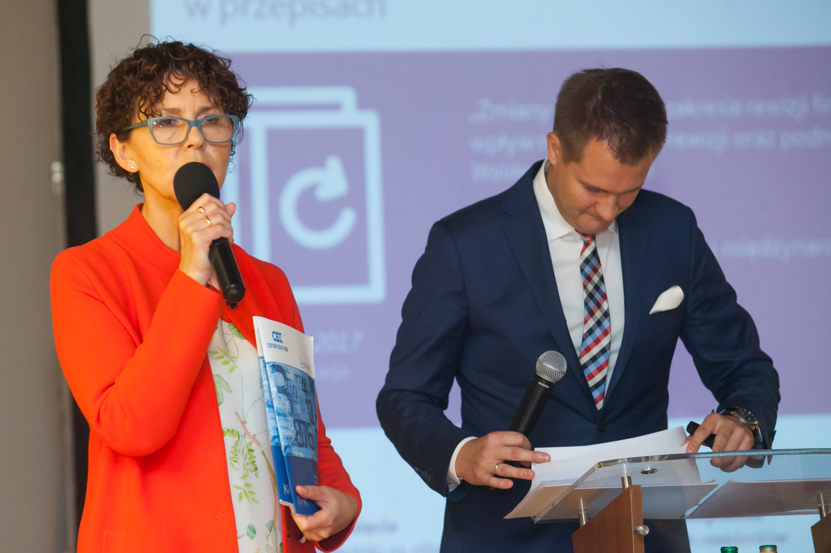 Barbara Misterska-Dragan, zastępca prezesa KRBR, szczegółowo omówiła działania komisji ds. standardyzacji: tłumaczenia poszczególnych MSB, opracowywanie alertów, a przede wszystkim przygotowanie i publikację „Przewodnika MSB – Procedury”. Przedstawicielka KRBR zaprezentowała autorów i konsultantów tego obszernego materiału, a także przybliżyła wyniki inicjatywy „Z Przewodnikiem po Polsce”, w ramach której w spotkaniach szkoleniowych w poszczególnych RO uczestniczyło ponad 1300 biegłych rewidentów.