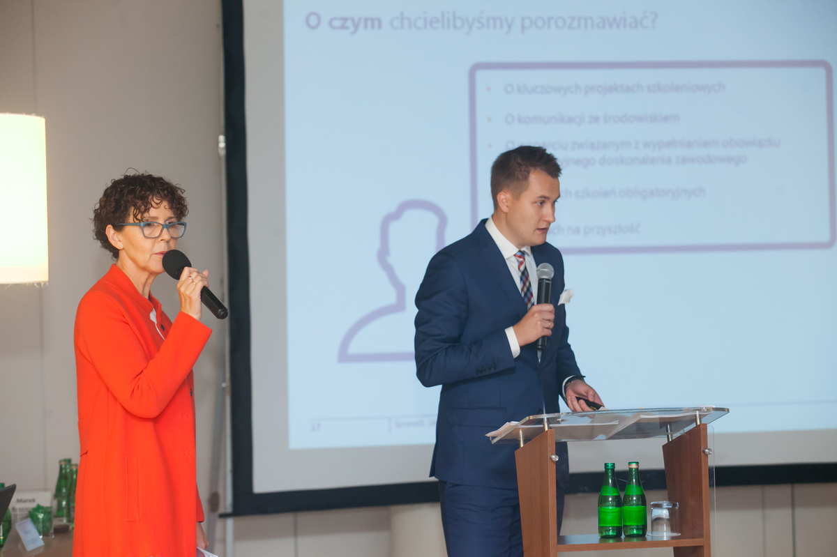 W kolejnej części Ewa Sowińska, zastępca prezesa KRBR, oraz Paweł Tyszer, dyrektor CEK, zaprezentowali aktualny stan rozbudowywanego od początku kadencji systemu szkoleń: specjalne oferty dla regionalnych liderów i trenerów, nowe materiały szkoleniowe i metodyczne, a także pierwsze, w większości pozytywne opinie o wprowadzonym trzyletnim cyklu szkoleniowym. Omówiono także wpływ głosu biegłych rewidentów z całej Polski na program ODZ, w którym pojawiły się nowe tematy szkoleń – między innymi związane z umiejętnościami miękkimi. Paweł Tyszer przedstawił projekty, które usprawnią szkolenia w najbliższej przyszłości: platformę e-learningową i infolinię poświęconą ODZ. Z kolei Ewa Sowińska pokazała efekty zaangażowania PIBR w różne fora poświęcone społecznej odpowiedzialności biznesu i poinformowała, że w biurze PIBR te tematy koordynuje Ewelina Kaczorowska-Wiosna – kierownik Działu Samorządowego.