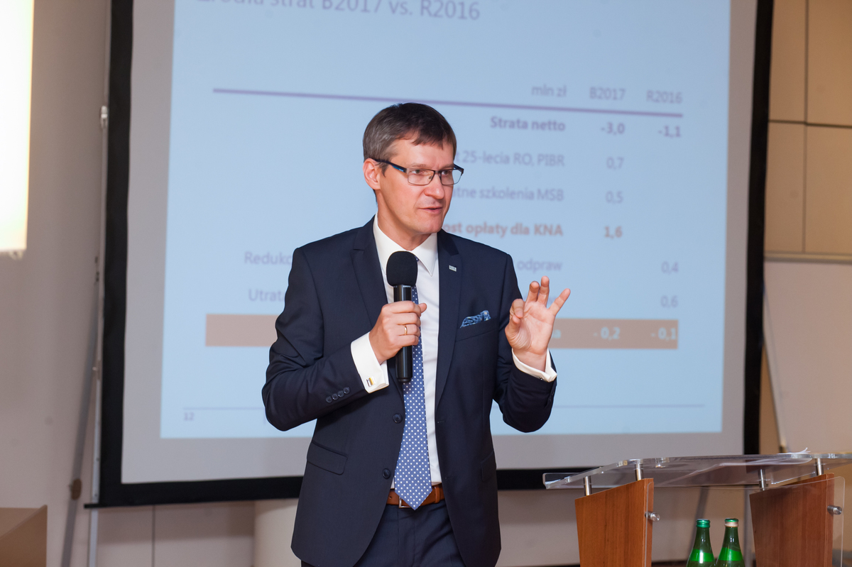 Spotkanie otworzył Krzysztof Burnos, prezes KRBR, po którym głos zabrała Jolanta Gałuszka, skarbnik Rady, która przedstawiła najważniejsze dane finansowe PIBR. Prezes KRBR omówił następnie najważniejsze wyzwania budżetowe: przede wszystkim wzrost opłaty na rzecz KNA. Wyjaśnił, że źródłem straty w 2016 są odprawy związane z redukcją zatrudnienia i wynagrodzeń w Biurze głównym PIBR oraz końcowy odpis wynikający z utraty wartości certyfikatów inwestycyjnych subGo Fund Wierzytelności TFI GO., których nie można sprzedać Prezes zwrócił uwagę, że w związku z postanowieniami nowej ustawy o biegłych rewidentach wysokość pobranej przez PIBR opłaty z tyt. nadzoru w 2017 roku będzie mniejsza o 1,6 mln zł. Ta wyrwa finansowa nie może być pokryta ze składek członkowskich. Dlatego niezbędne jest kontynuowanie rozpoczętych w tej kadencji działań restrukturyzacyjnych, które obniżą koszty realizacji zadań nadzorczych PIBR o 1,6 mln zł. Zdaniem Prezesa potencjalnymi obszarem oszczędności mogą być dalsza restrukturyzacja kosztów funkcjonowania biura PIBR ale również ustawowa deregulacja wymogów dotyczących organizacji i przebiegu kontroli jakości w firmach audytorskich.
