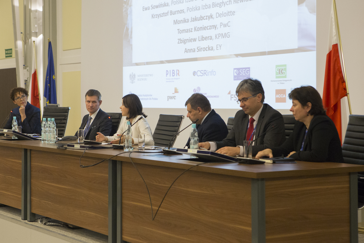 Specjaliści z różnych dziedzin dyskutowali o poszczególnych kategoriach informacji pozafinansowych, od zagadnień pracowniczych przez społeczne po środowiskowe. Kluczowy dla biegłych rewidentów był jednak moderowany przez Ewę Sowińską (zastępcę prezesa PIBR) panel audytorów, w którym udział brali Krzysztof Burnos (prezes PIBR) i przedstawiciele audytorskiej Wielkiej Czwórki.