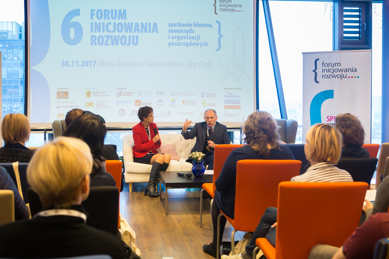 Forum rozpoczęło się od dyskusji Ewy Sowińskiej, wiceprezes PIBR, i prof. Cezarego Obrachta-Prondzyńskiego, socjologa z Uniwersytetu Gdańskiego, na temat rzeczywistej i sprawczej społecznej odpowiedzialności, która zawsze wiąże się z autentycznym zaangażowaniem. Dwoje ekspertów zastanawiało się także, jak budować zrozumienie pomiędzy różnymi światami – choćby NGOsów i samorządów. Zwrócili również uwagę na to, jak narastająca tendencja do obudowywania wszelkich dziedzin procedurami de facto zmniejsza gotowość do podejmowania odpowiedzialności – co z kolei hamuje innowacyjność.