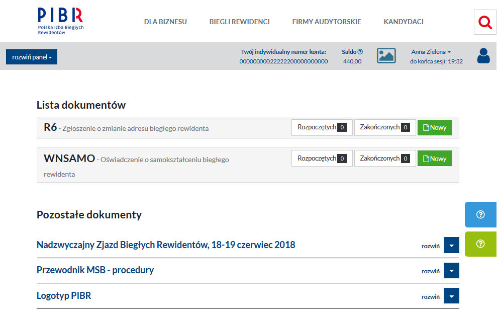 Chcielibyśmy stopniowo zmierzać do sytuacji, w której całość dokumentacji i raportowania biegłych rewidentów i firm audytorskich przeniesiona jest online. W najbliższym czasie będą to formularze R4 i R5, powiadamiające o rozpoczęciu i zakończeniu współpracy biegłego rewidenta z firmą audytorską, a także zmiany dotyczące nowego sprawozdania P11, które uwzględniać będzie zarówno informację o ubezpieczeniu OC, jak i rozliczenie opłaty rocznej (w części kierowanej do PIBR). Czyli mówiąc wprost – zamiast trzech osobnych dokumentów firma audytorska wypełni jeden, a my oczywiście będziemy zachęcali, aby zrobiła to przez internet. W przypadku tego ostatniego dokumentu, czyli sprawozdania P11 z rozpoczęciem prac czekamy jeszcze na akceptację uchwały KRBR przez Komisję Nadzoru Audytowego.