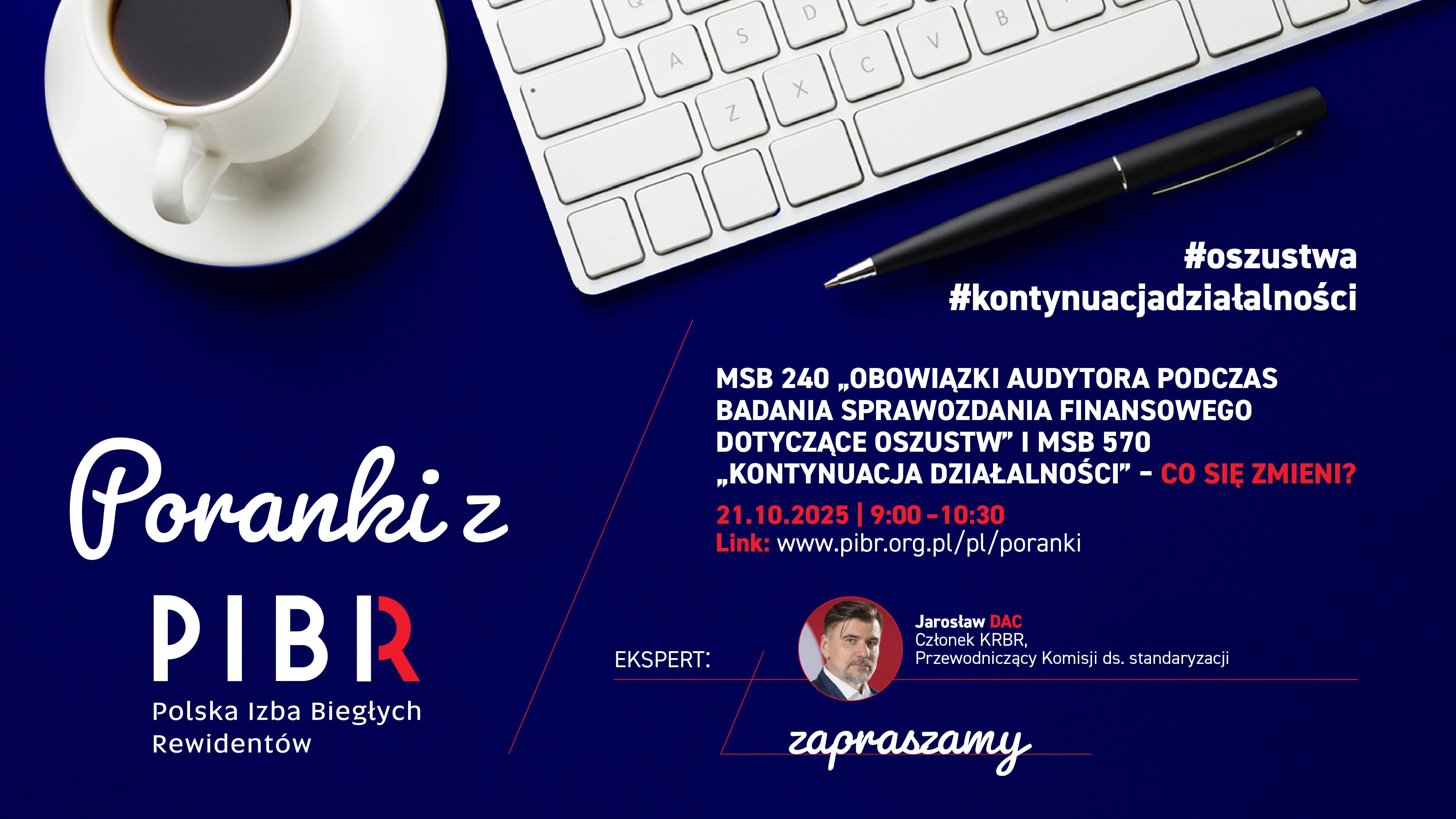 Zapraszamy na kolejny „Poranek z PIBR”, który będzie poświęcony omówieniu najważniejszych zagadnień związanych z procesem postępowania kwalifikacyjnego na biegłych rewidentów. Nasi goście – przedstawiciele Komisji Egzaminacyjnej – przybliżą specyfikę każdej z dwóch ścieżek prowadzących do uzyskania uprawnień. Opowiedzą jak wygląda potwierdzanie wymaganej wiedzy przez kandydatów na biegłych rewidentów drogą złożenia egzaminów z wiedzy przed Komisją Egzaminacyjną (ścieżka 1) lub zaliczenia egzaminów z wiedzy na podstawie zdanych egzaminów na uczelniach (ścieżka 2). Będzie również mowa o praktykach i aplikacji oraz wieńczącym ścieżkę edukacyjną egzaminie dyplomowym. Goście naświetlą również ustawowe regulacje w zakresie uzyskiwania uprawnień do atestacji sprawozdawczości zrównoważonego rozwoju w ramach postępowania kwalifikacyjnego przed Komisją Egzaminacyjną.